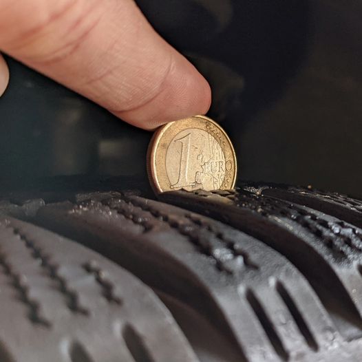 Wenn der äußere Messingring über das Profil hinausschaut sollte der Reifen gewechselt werden.